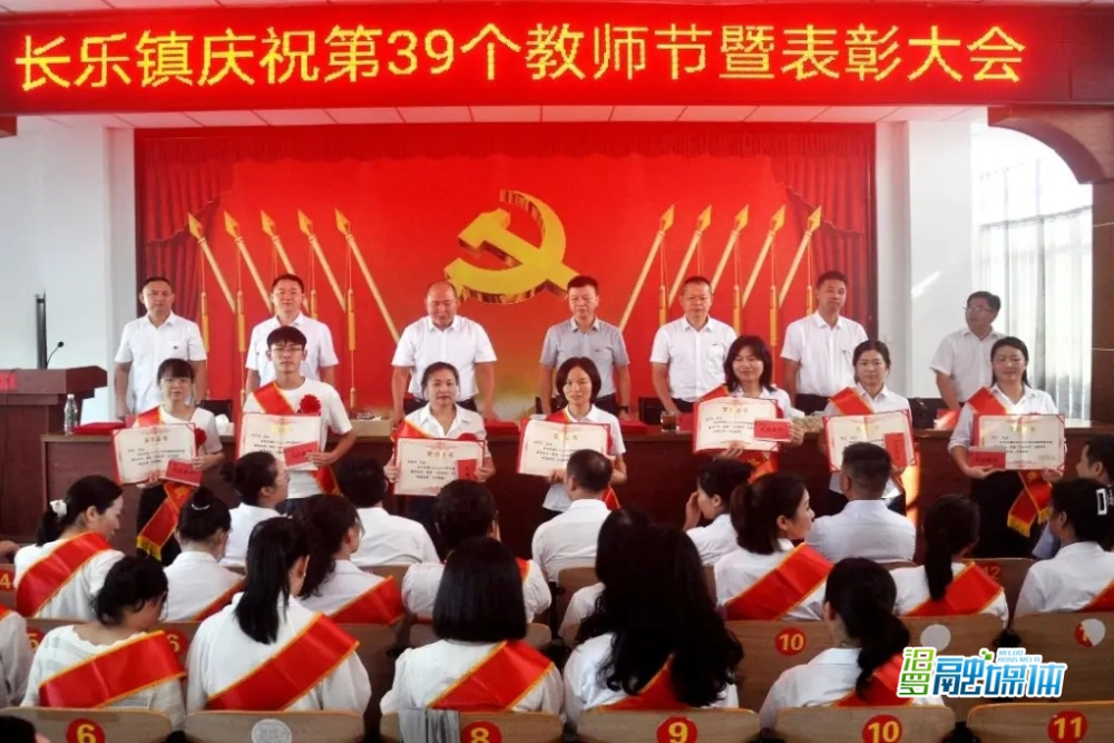 长乐镇举行教师节庆祝活动,近200人参与表彰大会,市政协主席仇正勇出席并为大会颁奖。大会表彰了2位优秀校长,11位优秀教师,41位先进教师,11位镇级名师,共发放奖金12万余元。(通讯员 周凤娇)