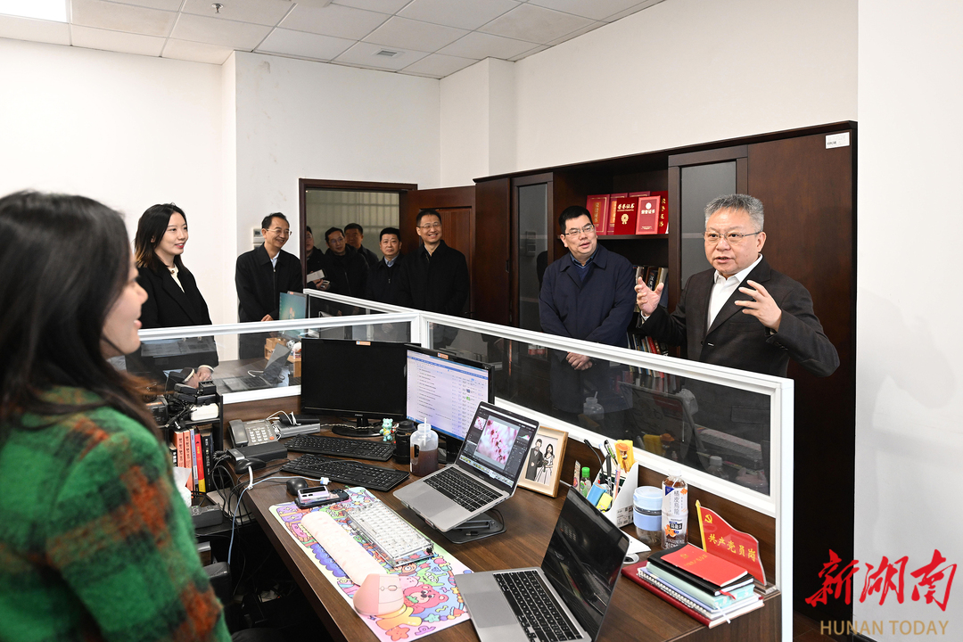(3月28日,沈晓明走访中央广播电视总台湖南总站。以上图片均由 湖南日报全媒体记者 唐俊 摄)