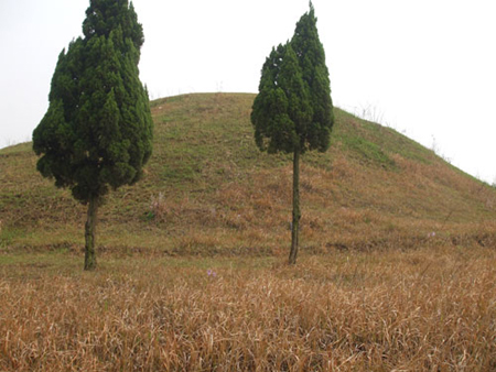 我国伟大爱国诗人屈原于公元前278年投江殉国后,传说尸体打捞上来时,有一边脸颊被鱼虾吃了,其女女嬃用平日在汨罗江中淘洗积赞的沙金为父闲配上了半边金脸,葬于汨罗山上。乡人颂之曰:“九子不能葬父,一女打金冠。”(楚怀王客客死于秦,虽有九子,却不能及时葬父)充分反应了百姓鲜明的爱憎。消息传到垣襄王和公子子兰耳里,他们勃然大怒,扬言要掘墓鞭尸夺金脸。女嬃得知跪在父亲坟前痛哭,决心在汨罗山上再筑几座假坟,以假乱真。她用罗裙从山下兜土,不分白天黑夜,顶着炎炎烈日,忍饥挨饿,好些天才筑起一座小土堆,这天傍晚,她实在太累了,终于倒在土堆旁昏然睡去。朦胧中只见一位银须飘拂,身着黄袍的老人,手持龙头杖,从身边破土而出,老人将手中龙头指向山下,龙头越伸越长,一直伸到山下,轻一戳,再一抬手,一座巨大的土堆随着龙头杖落在了汨罗山上。老人一遍二地挥舞着龙头杖,顷刻间,山上11座高大的土堆拔地而起,老人环视土堆确认与屈原墓别无二致后,缩回龙头杖,遁地而去。此时,山下村庄传来声声鸡鸣,女嬃笃然惊醒,顿觉浑身舒爽,起身准备再去兜土筑坟,却发现方圆两华里的山上已出现了12座高大的坟墓,连自己也辨别不出真假了。原来女嬃的精神感动了天帝,天帝河土地神,挥动起山杖,一夜之间帮她筑起了11座疑冢。这只是传说但也有人认为是为了防止秦兵进攻后掘墓鞭尸,罗子国贵族带领人民群众筑墓以假乱真。