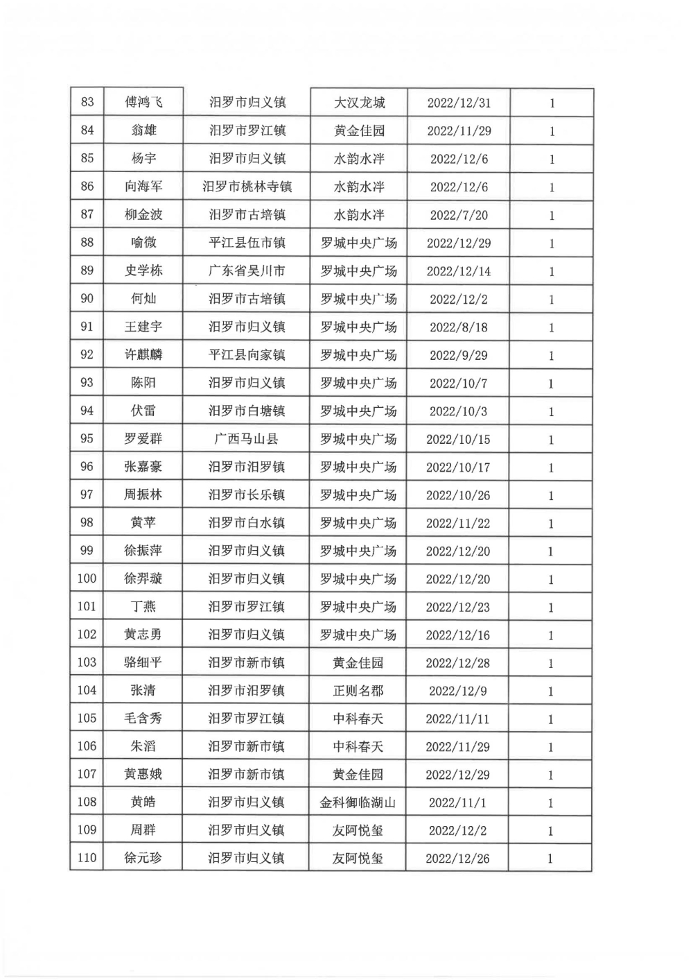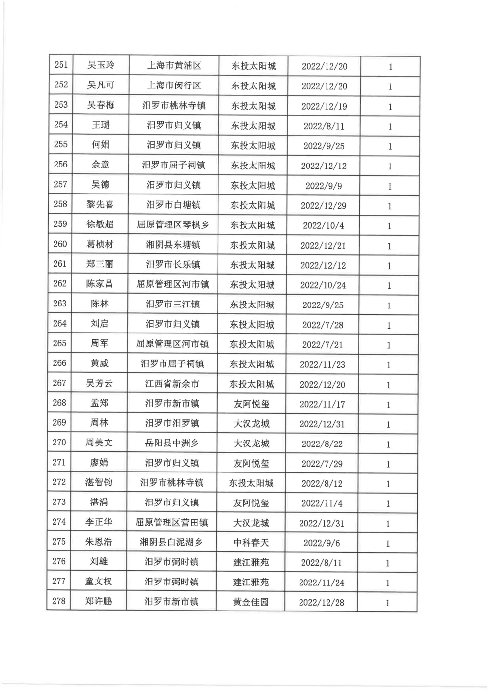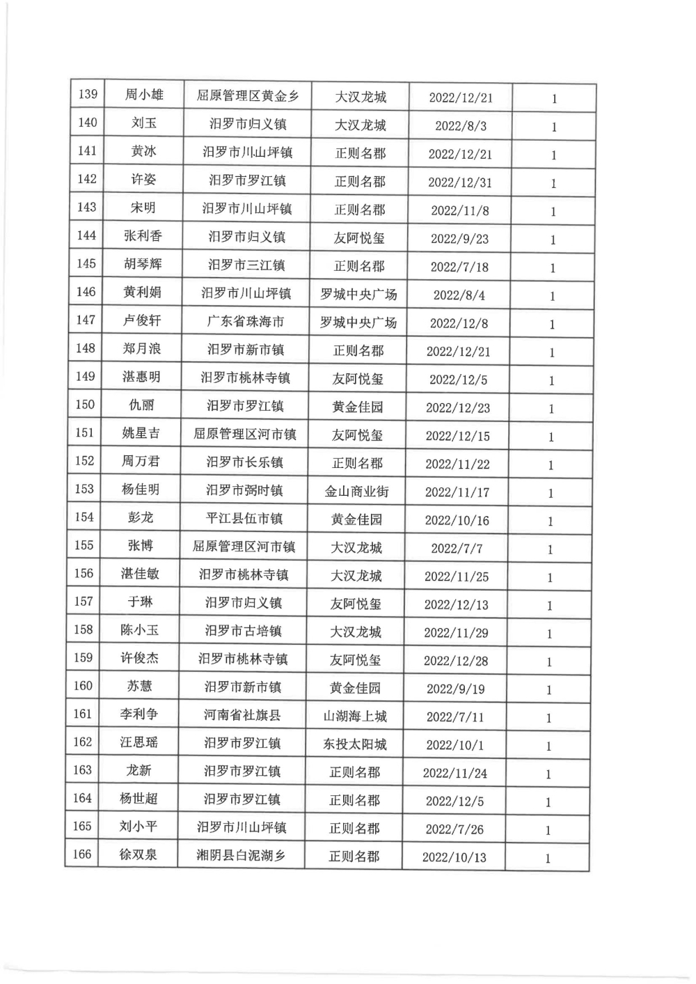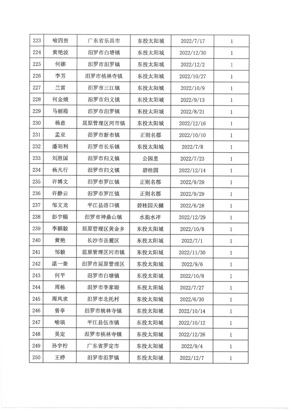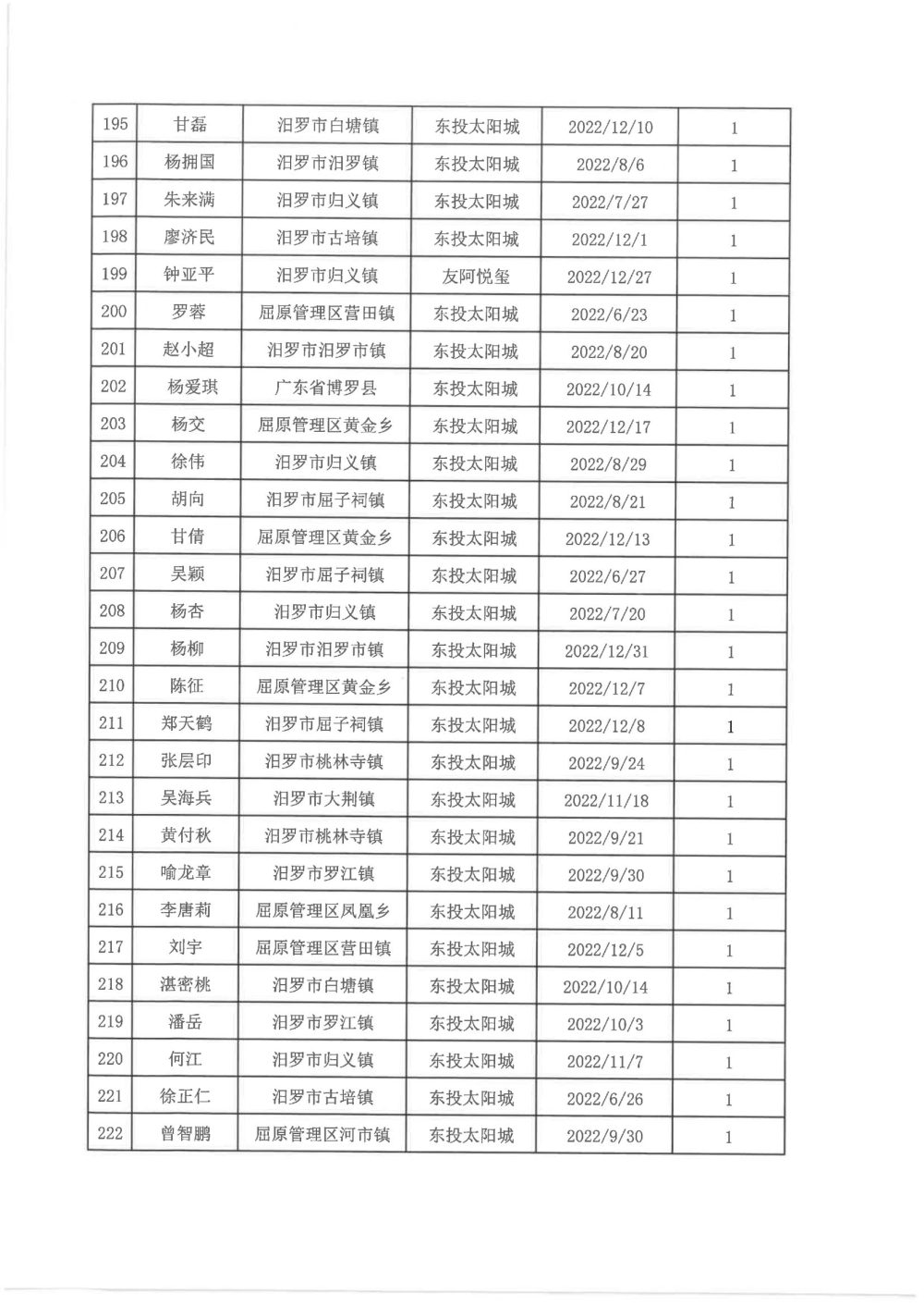 根据汨政办发(2022)13号《关于进一步促进汨罗市房地产市场平稳健康发展的若干措施(试行)》的规定,经汨罗市房地产协调机制办公室审核,现对我市2022年6月21日-12月31日期间购买商品房第三批共850户申报财政购房奖励和契税补贴名单信息予以公示。公示期为五个工作日(2023年10月20日-10月26日)。购房奖励和契税补贴发放流程:公示无异议后,市财政部门受理申请、组织银行发放。具体发放时间另行通知。