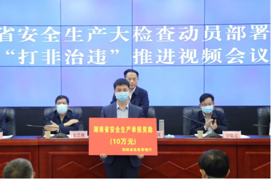 会议就安全生产大检查及“打非治违”巩固提升方案进行了解读,通报了今年以来全省应急管理系统安全生产举报查实奖励情况,现场向株洲市攸县鸾山镇龙会村小乌仙煤矿、琴陂村兴隆煤矿非法违法开采、瞒报事故的举报人发放十万元奖金。省公安厅、省交通运输厅、省住房和城乡建设厅、省自然资源厅负责人分别就各自领域安全生产大检查作工作部署。
