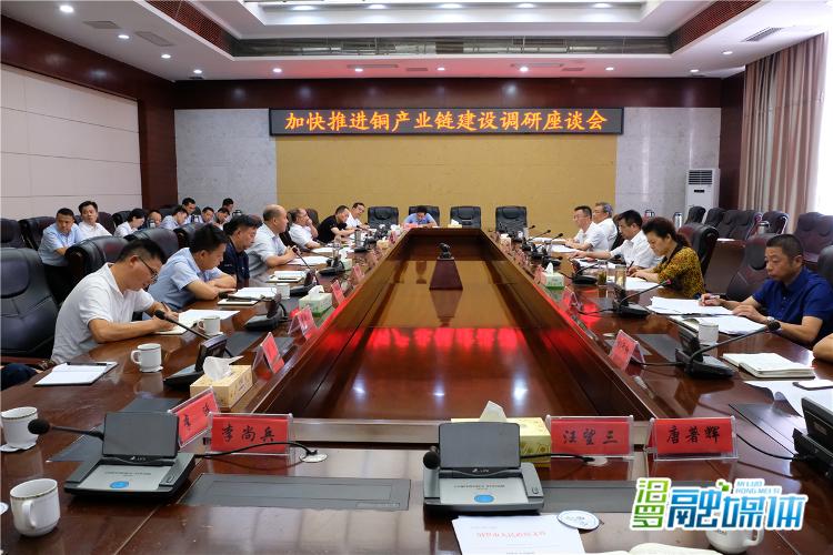 7月21日,汨罗市召开推进铜产业链建设调研座谈会,部署推进铜产业链建设工作。岳阳市政协主席徐新楚,汨罗市领导喻文、朱平波、闵秀明、彭千红、刘勇、林治学、陈培宏、舒文治参加会议。