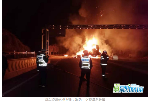 汨罗融媒体讯(记者 张为)2月23日5时10分许,G536上一辆货车因操作不当,撞上道路中央的花坛护栏,导致车头起火,随后整车及货物起火熊熊燃烧。接警后,汨罗消防、交警、当地政府、高铁站、交通运输局等相关部门立即赶赴现场救援,司机和乘客均未受伤。