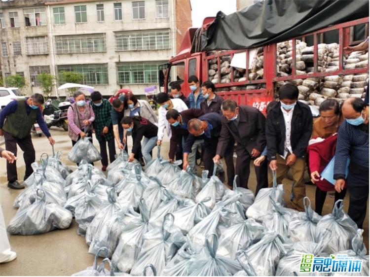 给每个贫困户学员分发菌包