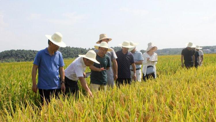 湖南省农技推广总站副站长刘登魁、湖南农业大学教授唐启源一行来到汨罗,就再生稻生产情况进行调研和指导