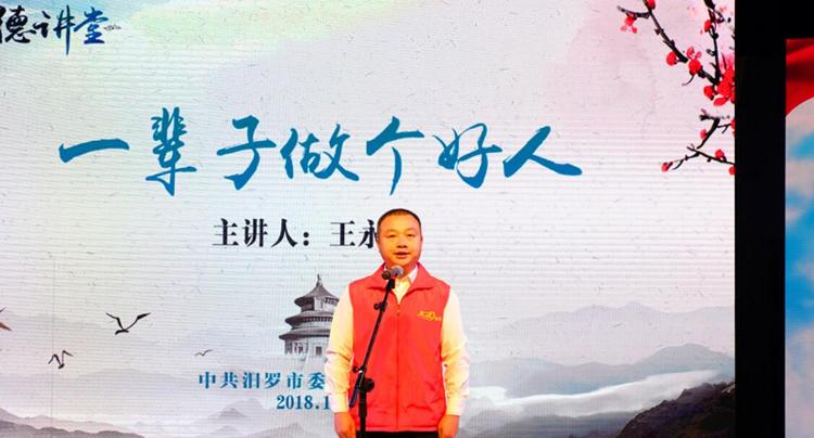 “学雷锋、做好人,可以让自己的生命更加厚重,更能创造生命的价值。”道德讲堂上,“中国好人”王永林以《一辈子做个好人》为题,倾情讲述自己多年投身公益事业的所获所感,号召大家为社会做表率、作贡献,让在场人员很受感动。随后,王敏求带头在创建“志愿者之城”签名活动中签名,并为“最美新闻工作者”谢江、张为颁奖。宣传部部务会成员为“文明股室”部机关办公室及“文明家庭”黄松柏家庭、黄文灿家庭颁奖。