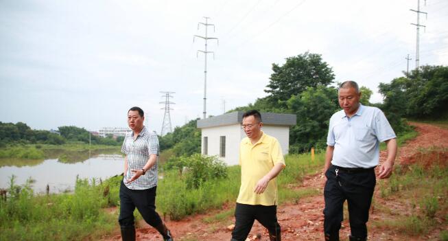 喻文(中)到新市镇丛洋辟洪渠检查排水情况