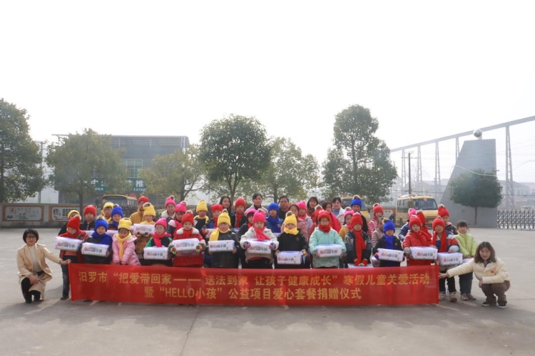 当天,汨罗市妇联来到三江镇开展"把爱带回家--送法到家 让孩子健康成长"寒假儿童关爱服务活动,为这里的200名留守儿童、困难家庭儿童发放"HELLO小孩"公益项目爱心套餐。
