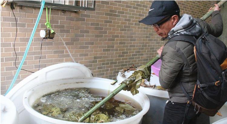 现在,每天醒来萧宪业的第一件事就是与他的生物菌肥打交道。走进他租住在西长的房子,一个个白色的大桶整齐地摆放在地上,“你们闻闻,是不是还有清新的果香!”他打开其中一个桶盖,一边用竹竿搅着,一边神采飞扬地向记者介绍着他的“宝贝”。“这些都是我自制的肥料,像无花果的果实没办法采收了,我就采下来当作堆肥的材料,还有桑葚的叶子,其它的树叶或者水果都能拿来发酵。”
