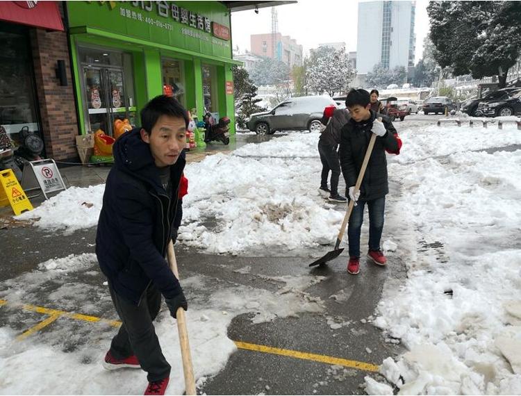 在车站社区,30名党员志愿者行动起来,为保障居民出行安全,启动应急措施,在车站社区城西北路,稻香街,树山杨通组路沿线除冰铲雪。