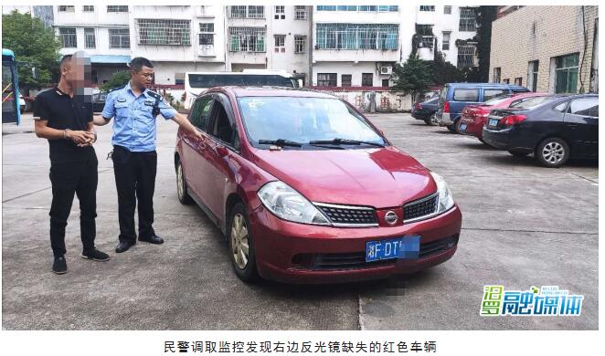 “我们在现场发现一个遗落的反光镜,初步确定肇事车辆为红色。随后,在出事地点附近一公里处的监控中,我们找到了一辆右边反光镜缺失的红色车辆,条件基本吻合。”长乐中队教导员陈彦介绍。