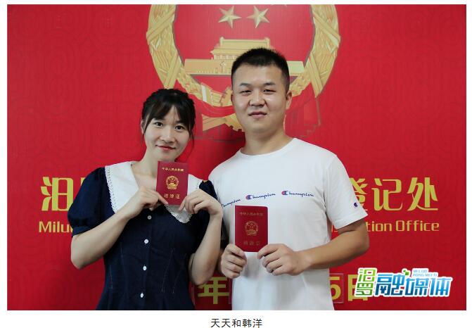 上午9时,婚姻登记处约有十来对新人在填写材料,天天和韩洋就是其中一对。两人6月7日在朋友聚会上认识,相处后笃定对方就是彼此要找的人,再加上父母支持,选择良辰吉日步入婚姻殿堂。