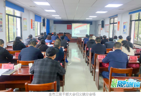 汨罗融媒体讯 (记者 周敏 李亚) 2月24日,汨罗市三级干部大会暨市委农村工作会议召开,归义镇组织镇村干部在分会场收看收听,并组织迅速贯彻落实三级干部大会精神,结合实际,进一步明确目标,迅速行动,真抓实干,把广大党员干部群众的思想统一到市委、市政府的重要决策上来,围绕"更高品质文化活力汨罗新篇章"的奋斗目标,强力开展征地拆迁、控建拆违、人居环境整治工作,全力服务城市项目建设,努力实现经济跨越式发展。