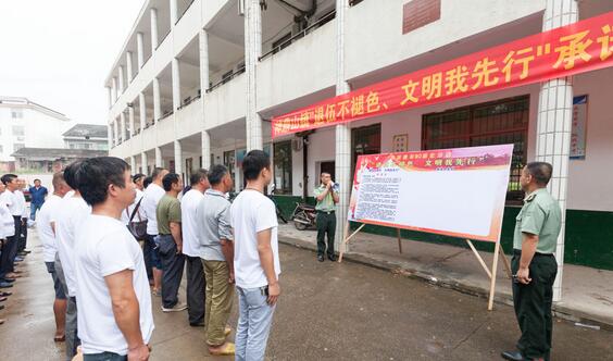 活动现场,退伍军人代表们穿着文化衫,整齐列队,依次走上签名台,在“退伍不褪色·文明我先行”的展板上签下了自己的名字,庄重承诺:争当对党忠诚的捍卫者、平安和谐的维护者、计划生育的遵守者、文明新风的示范者、脱贫攻坚的志愿者、规范建房的践行者、美丽家园的建设者。