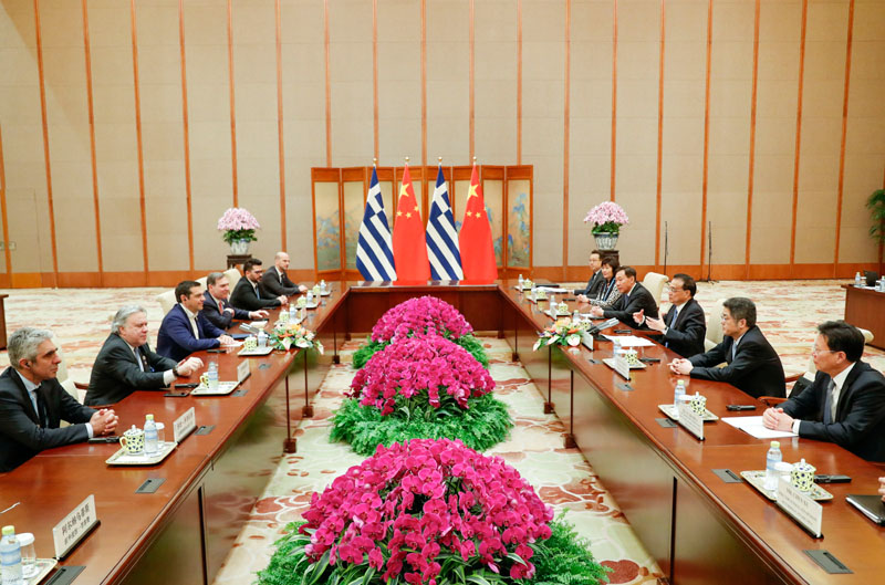 国务院总理李克强26日在钓鱼台国宾馆会见希腊总理齐普拉斯。