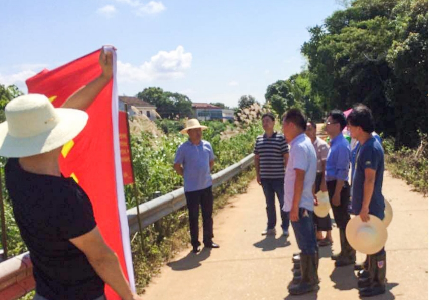 “我宣誓,我志愿加入中国共产党,拥护党的纲领,遵循党的章程,履行党员的义务……”手拿草帽,脚踏筒靴,7月4日的白塘镇双河坝反修河河堤上,循环经济产业园6名新党员宣誓入党,坚定、嘹亮的誓言在堤岸上回荡。