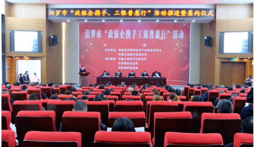 1月24日,汨罗市启动“政银企携手、工银普惠行”活动推进暨签约仪式,进一步推动汨罗普惠金融业务发展,解决园区当前中小微企业融资难、融资贵的困难,促进园区企业稳步健康发展。市委常委、常务副市长林治学,副市长、循环经济产业园党工委书记宋辉出席仪式,工行湖南省分行、岳阳分行、汨罗支行负责人及相关部门单位、园区相关企业负责人参加。