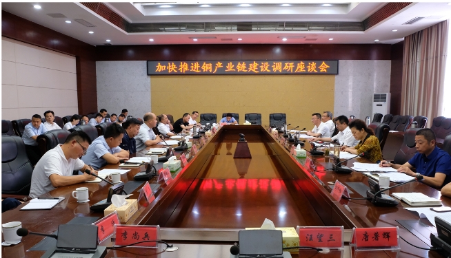 7月21日,汨罗市召开推进铜产业链建设调研座谈会,部署推进铜产业链建设工作。岳阳市政协主席徐新楚,汨罗市领导喻文、朱平波、闵秀明、彭千红、刘勇、林治学、陈培宏、舒文治参加会议。