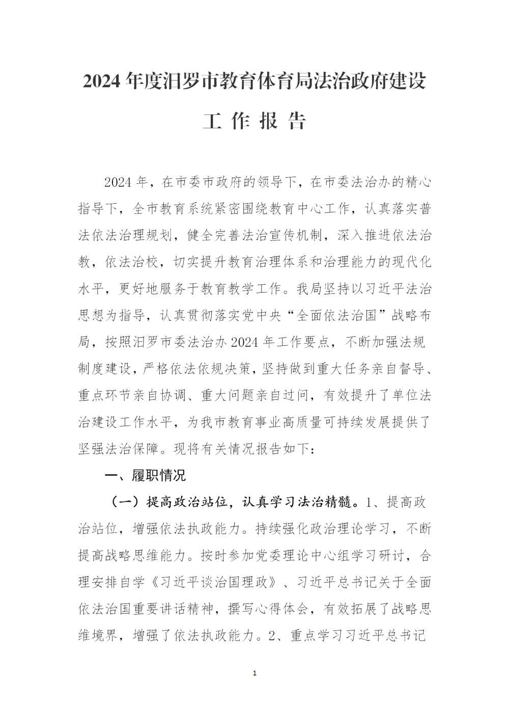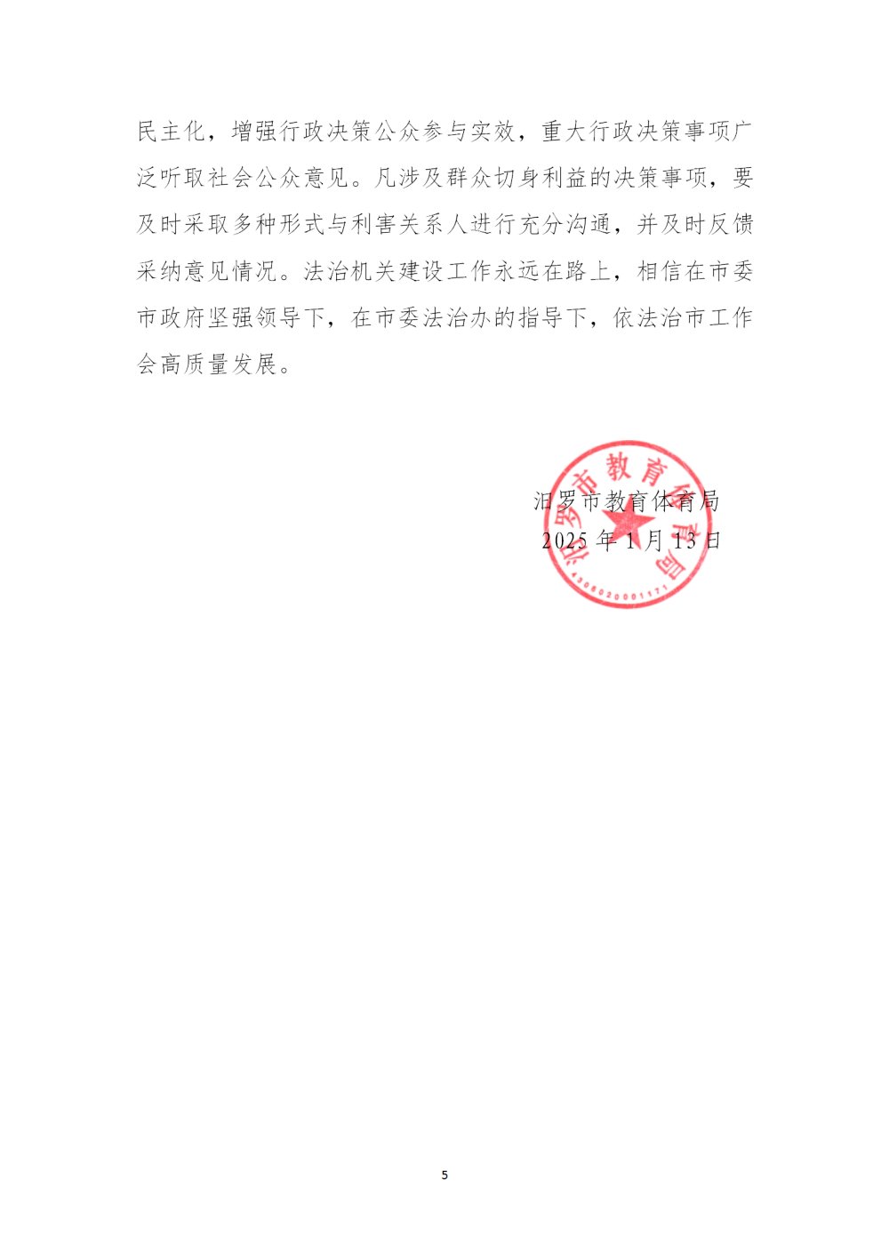 2024年度汨罗市教育体育局法治政府建设工作报告