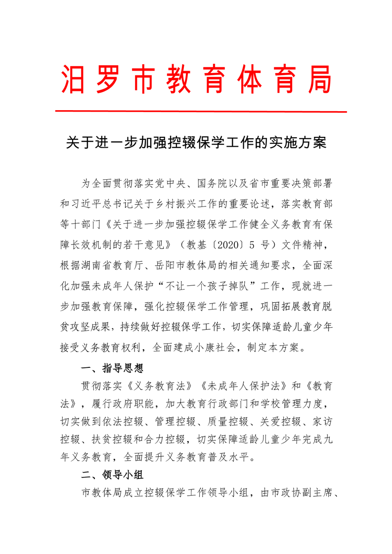 关于进一步加强控辍保学工作实施方案