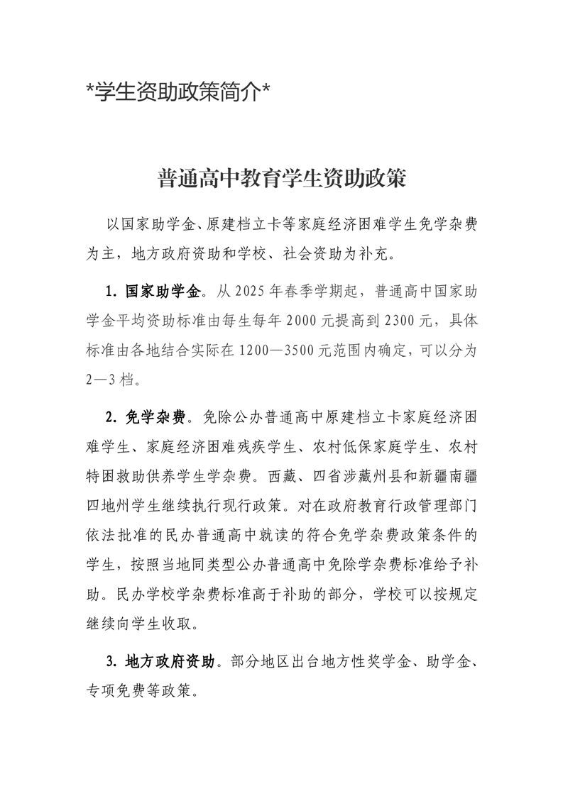 学生资助政策简介