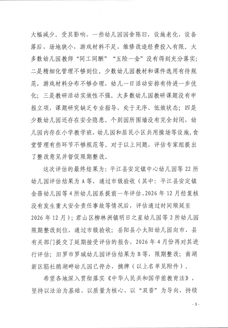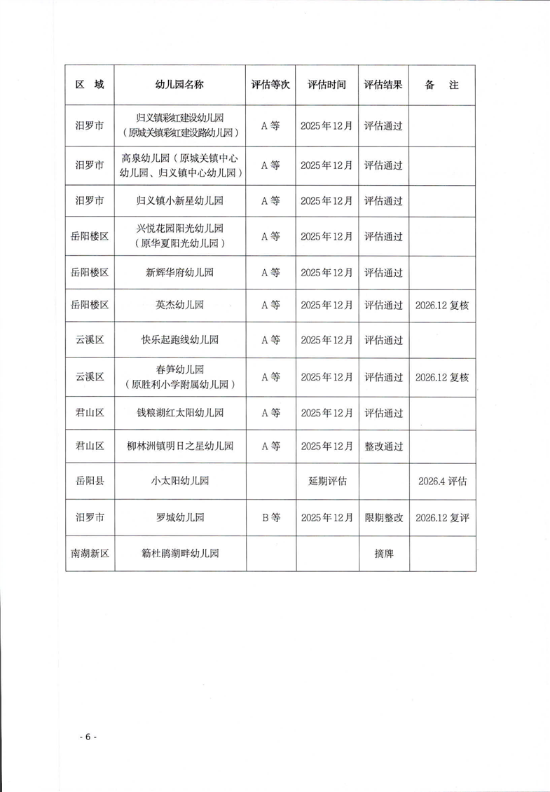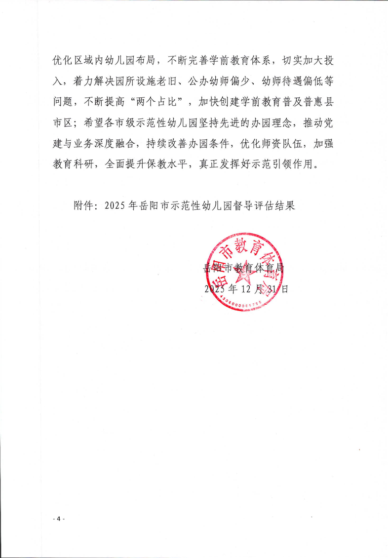 岳阳市教育体育局关于2025年度岳阳市示范性幼儿园督导评估情况的通报
