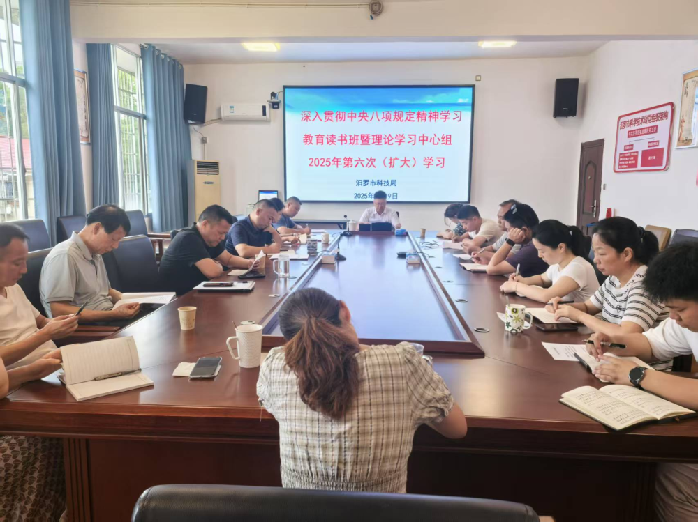 在“七一”建党节来临之际,为深入学习贯彻习近平总书记关于加强党的作风建设的重要论述精神和八项规定及其实施细则精神,6月19日上午,汨罗市科技局全体党员干部在科技局四楼会议室召开深入贯彻中央八项规定精神学习教育读书班暨理论学习中心组2025年第六次(扩大)学习,此次会议旨在通过集中学习研讨,进一步强化党员干部的纪律意识和规矩意识,推动全局作风建设再上新台阶。