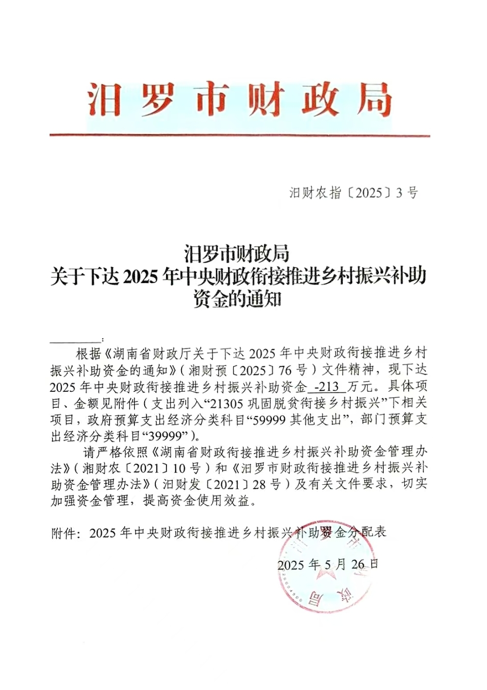 关于下达2025年中央财政衔接推进乡村振兴补助资金的通知
