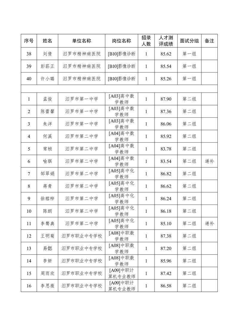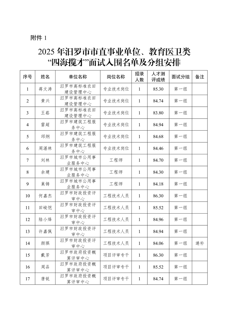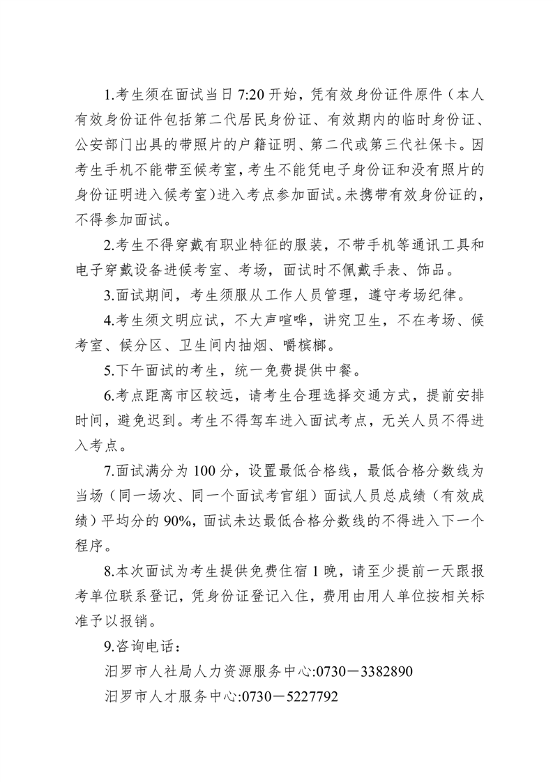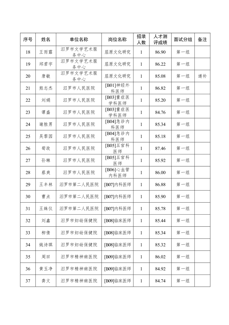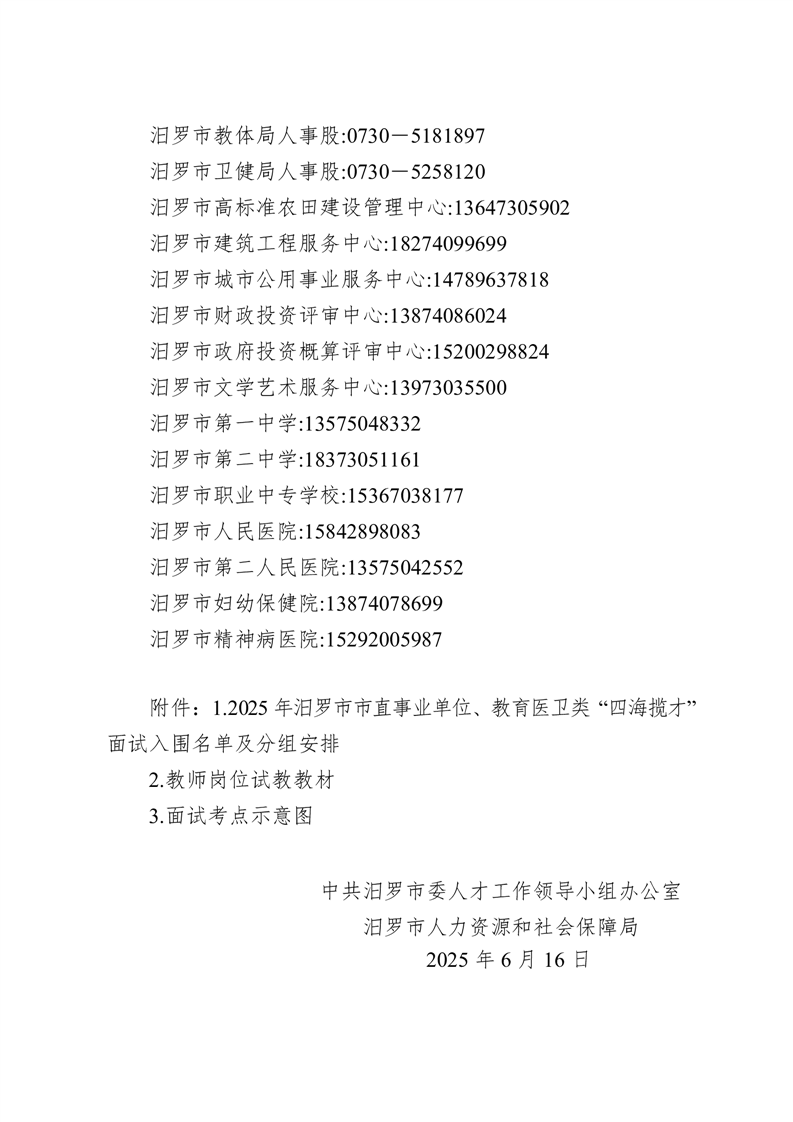 2025年汨罗市市直事业单位、教育医卫类 “四海揽才”面试公告
