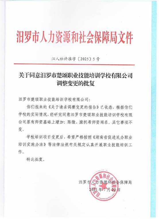 准予行政许可决定书汨人社许准字【2025】5号