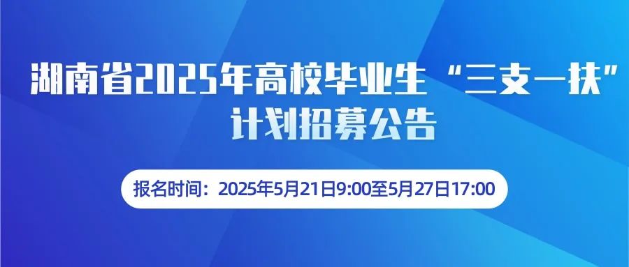 2025年湖南省公开招募“三支一扶”人员600名,服务期限2年。具体招募岗位计划详见《湖南省2025年“三支一扶”岗位计划一览表》(附件1)。