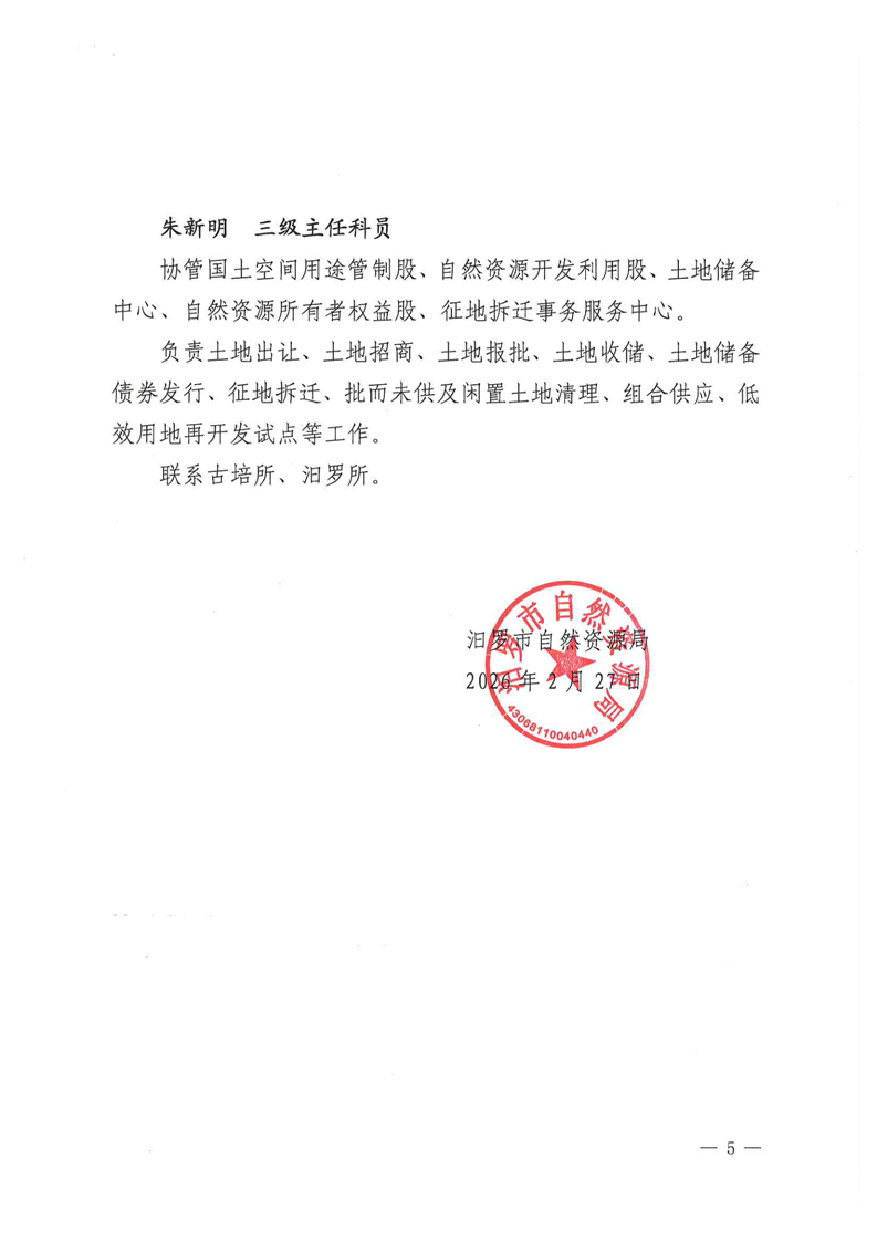 汨罗市自然资源局2026年关于调整党组班子成员及负责干部分工的通知