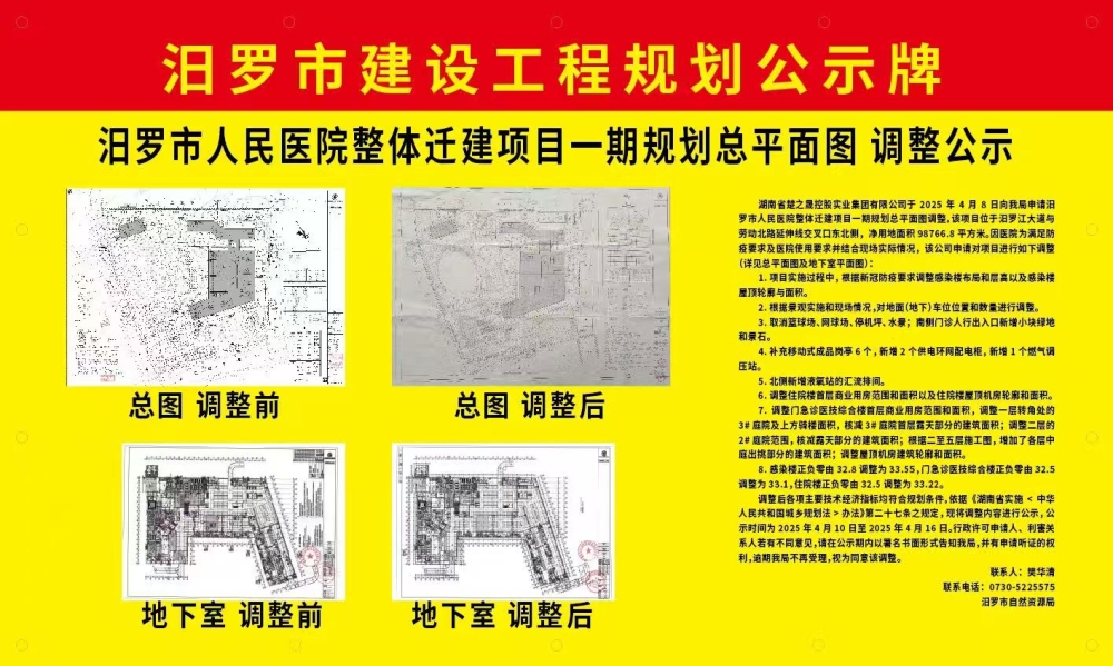 汨罗市人民医院整体迁建项目一期规划总平面图调整公示