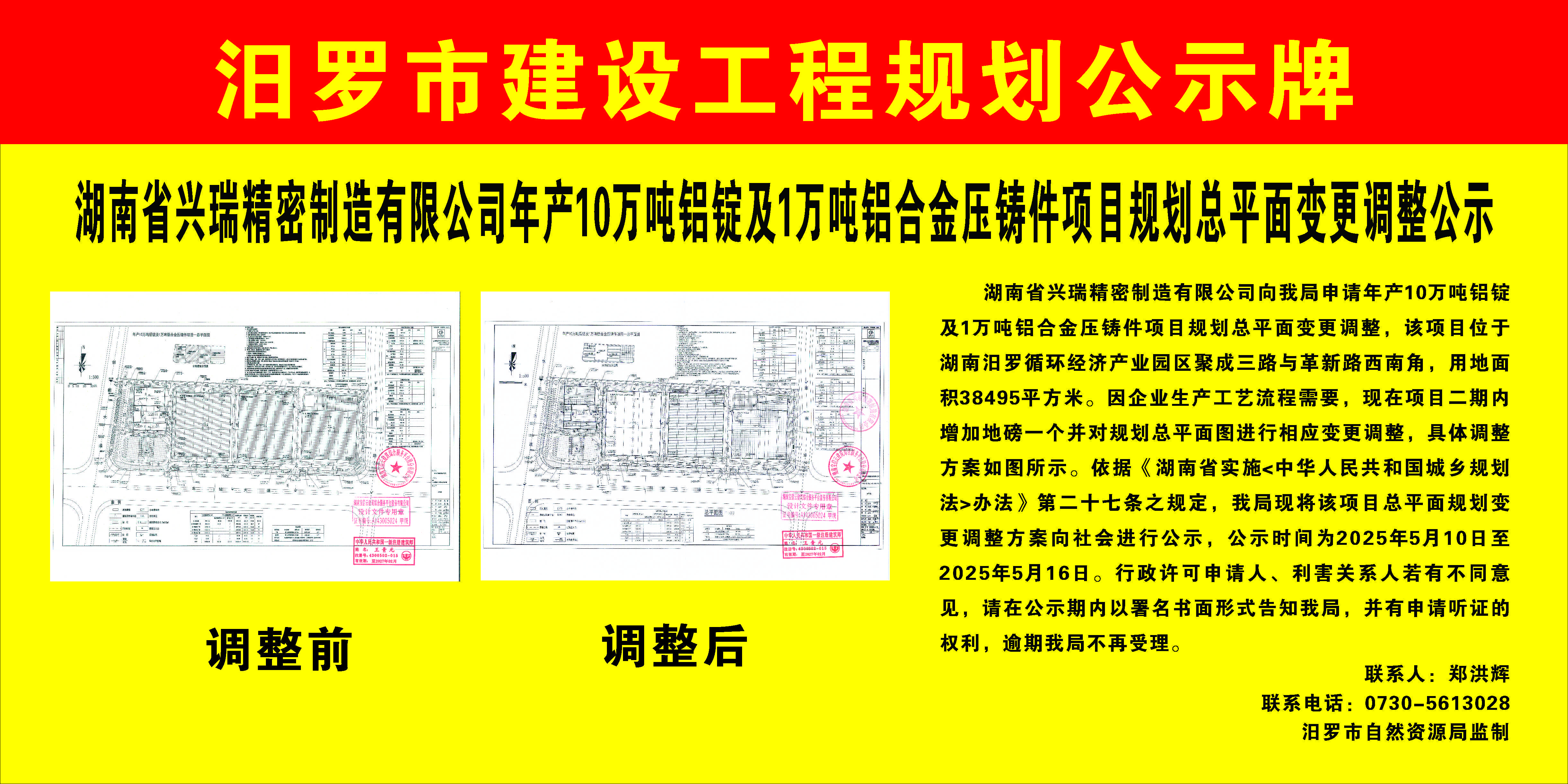 湖南省兴瑞精密制造有限公司年产10万吨铝锭及1万吨铝合金压铸件项目规划总平面变更调整公示