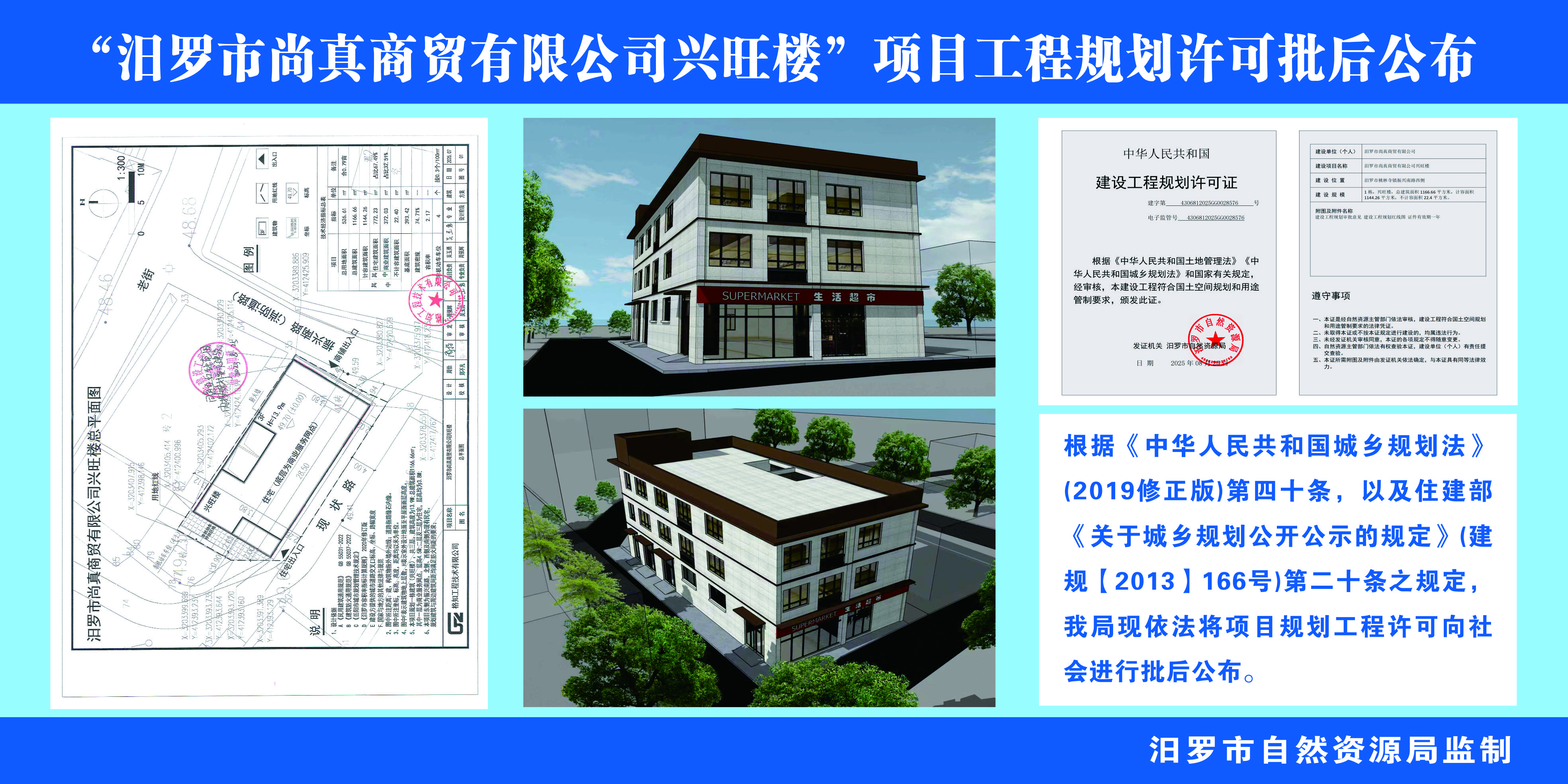 “汨罗市尚真商贸有限公司兴旺楼”项日工程规划许可批后公布