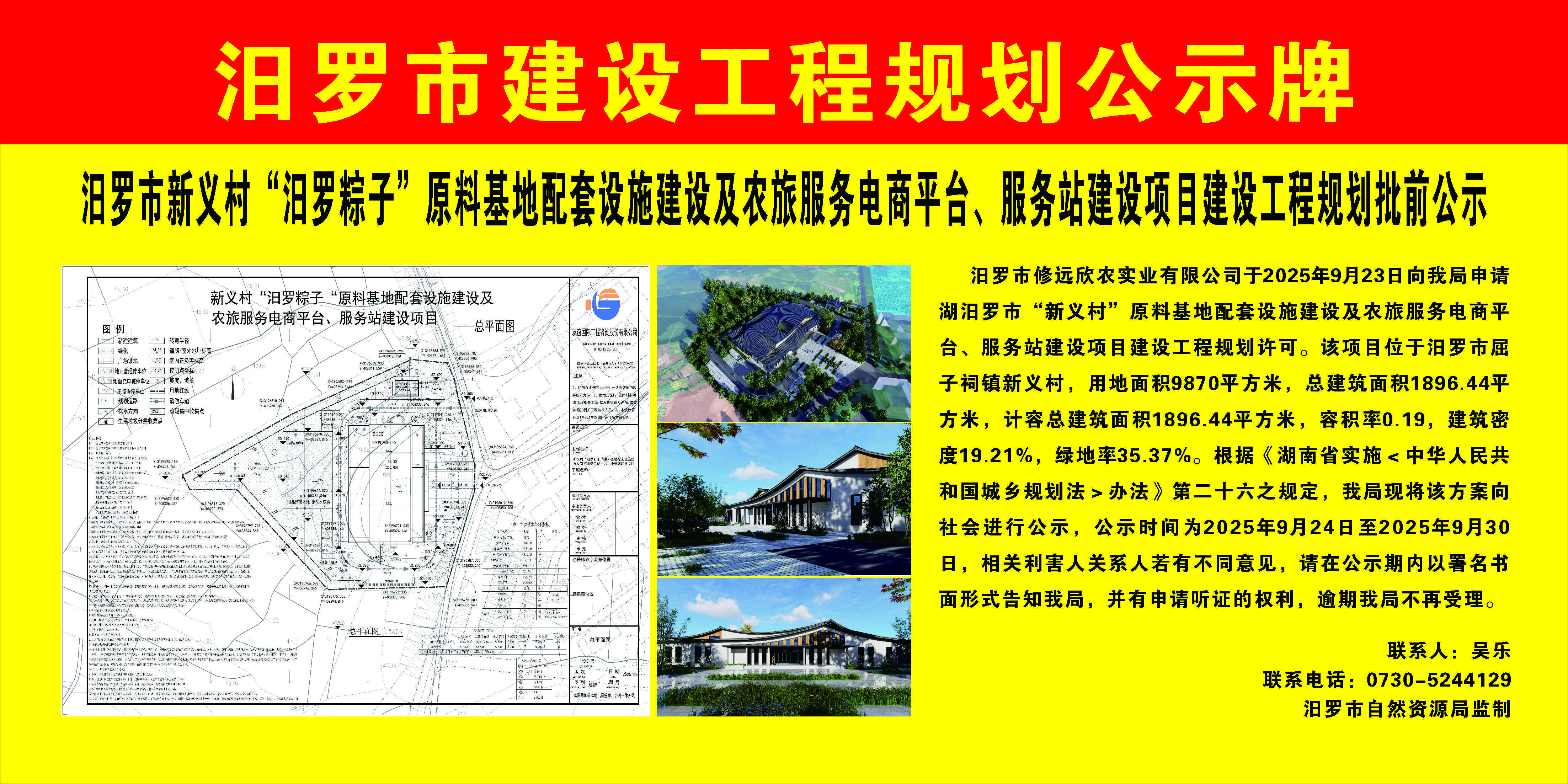 汨罗市新义村“汨罗粽子”原料基地配套设施建设及农旅服务电商平台、服务站建设项目建设工程规划批前公示