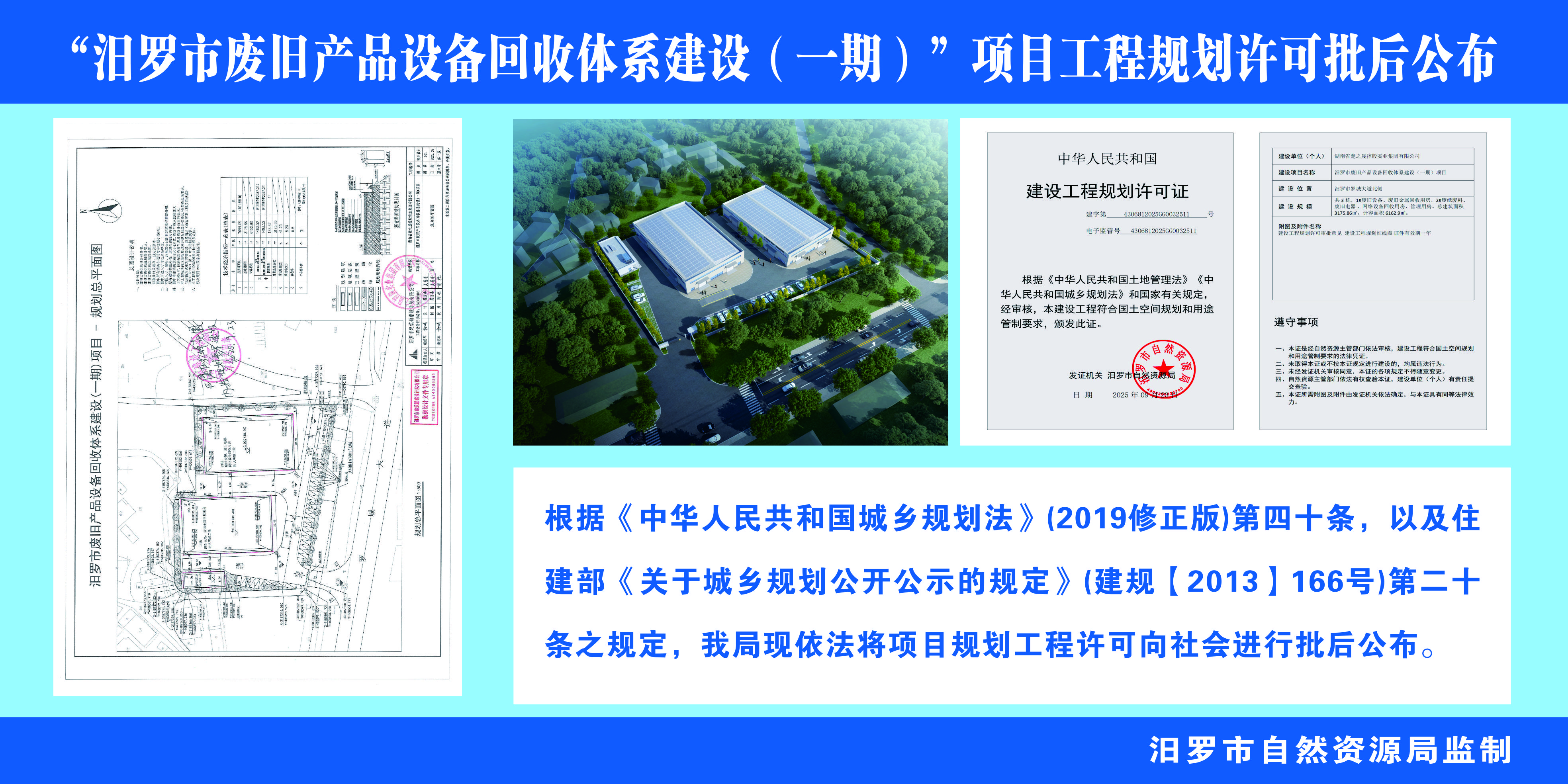 “汨罗市废旧产品设备回收体系建设(一期)”项目工程规划许可批后公布