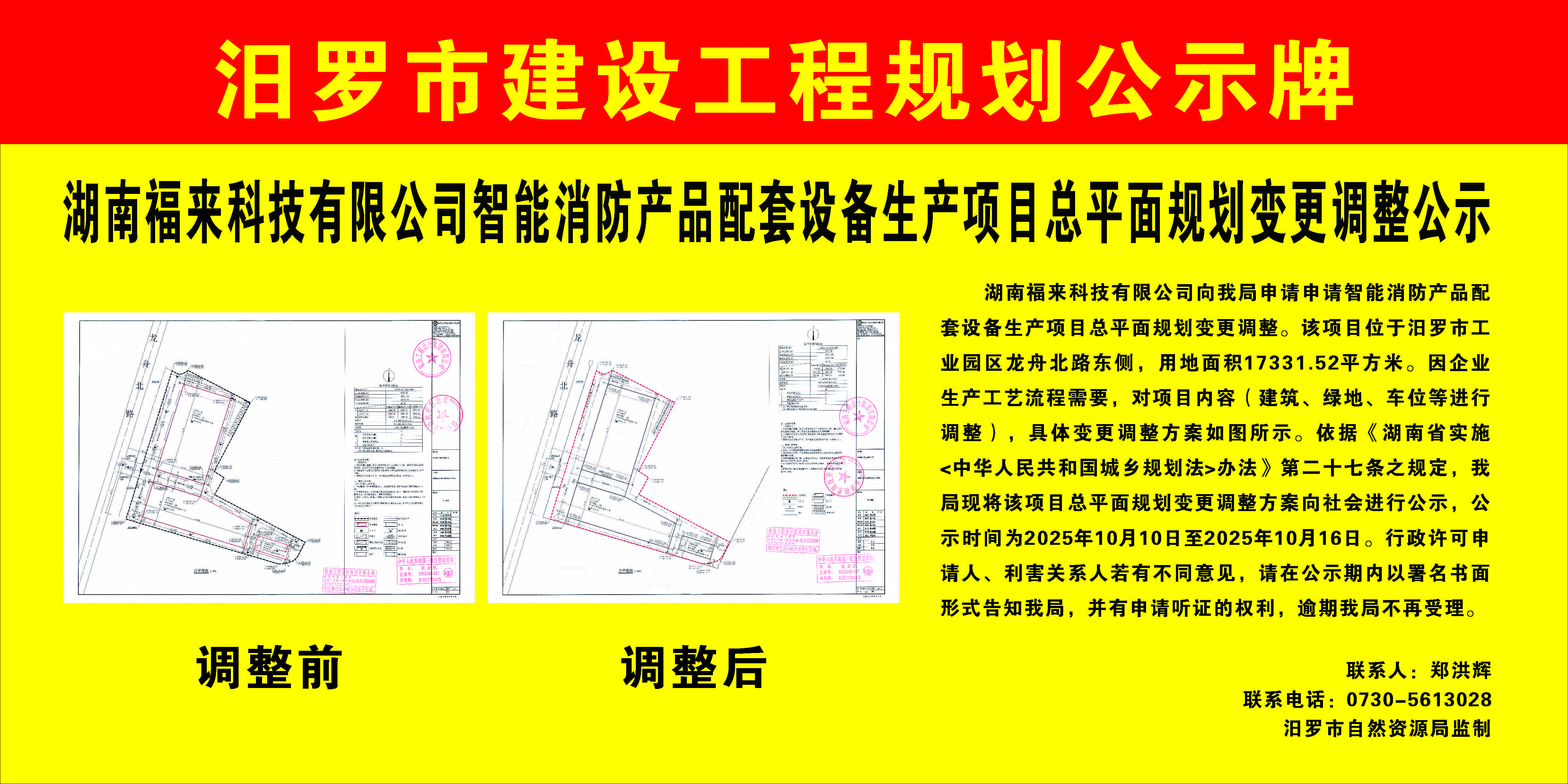 湖南福来科技有限公司智能消防产品配套设备生产项目总平面规划变更调整公示