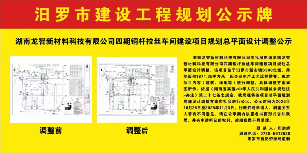 湖南龙智新材料科技有限公司四期铜杆拉丝车间建设项目规划总平面设计调整公示