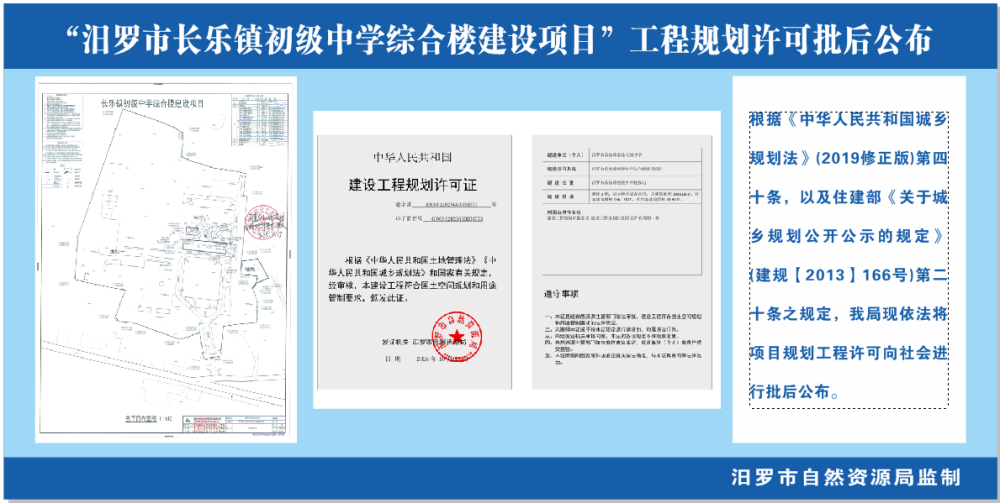 汨罗市长乐镇初级中学综合楼建设项目工程规划许可批后公布