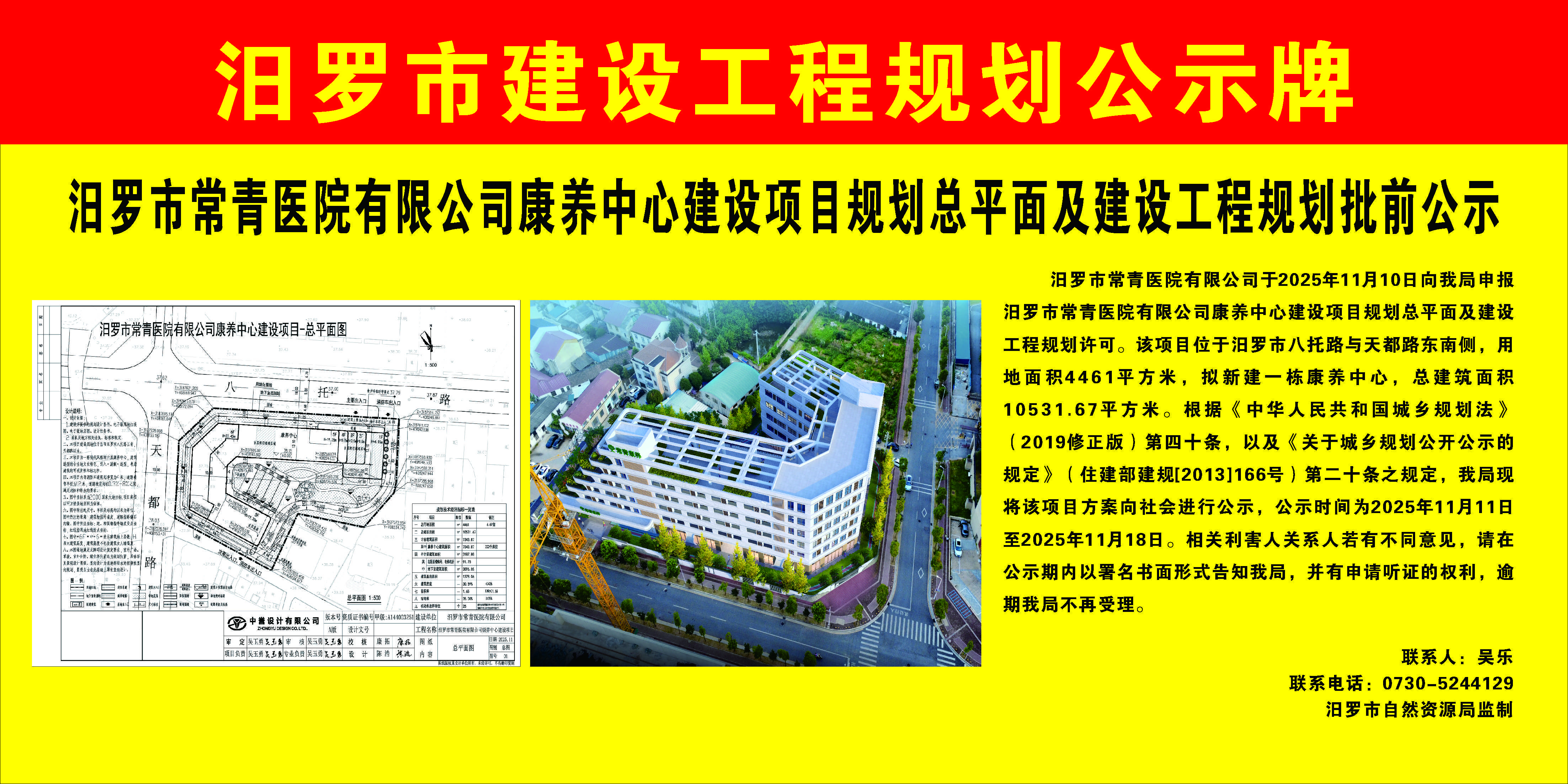 汨罗市常青医院有限公司康养中心建设项目规划总平面及建设工程规划批前公示