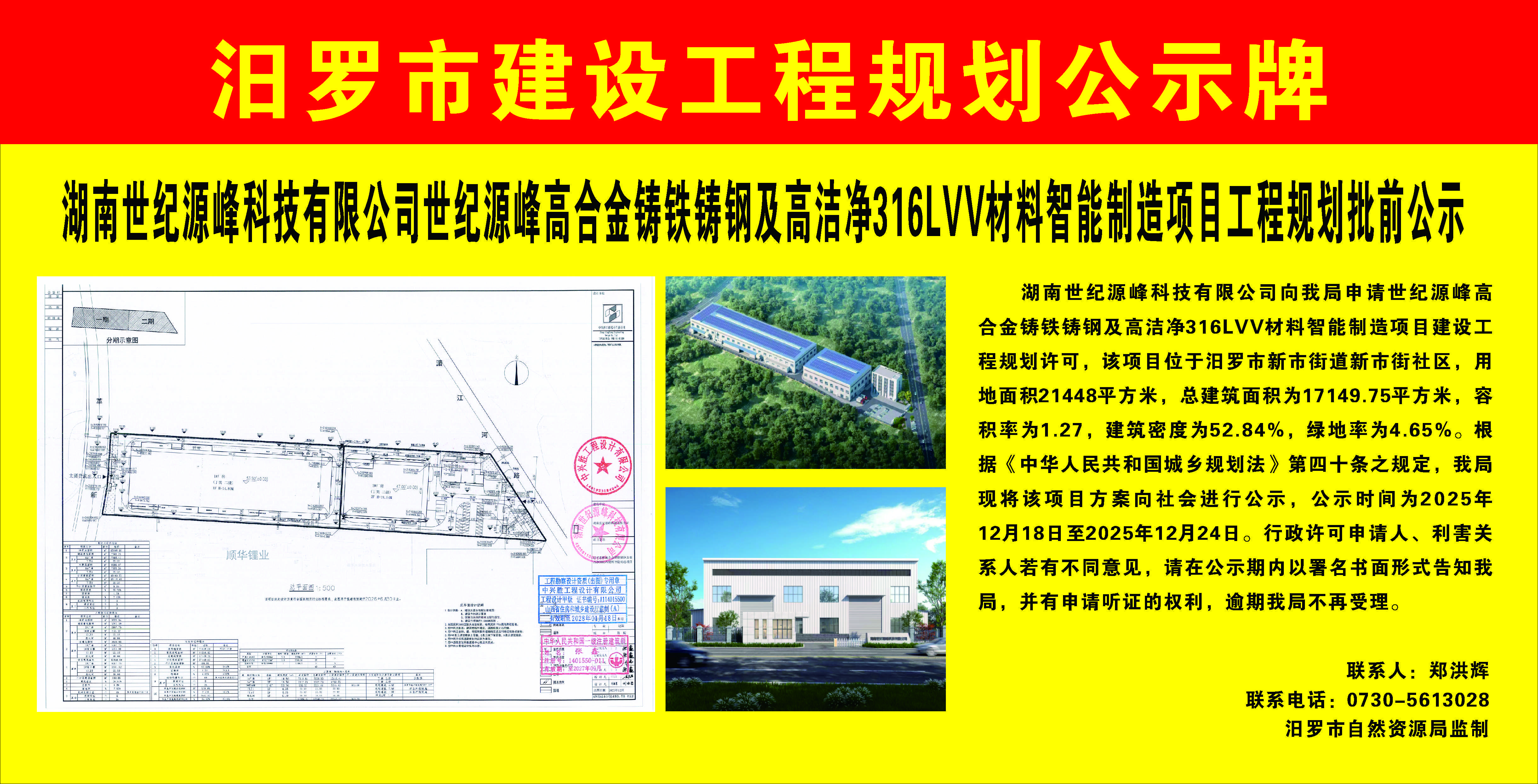 湖南世纪源峰科技有限公司世纪源峰高合金铸铁铸钢及高洁净316LVV材料智能制造项目工程规划批前公示