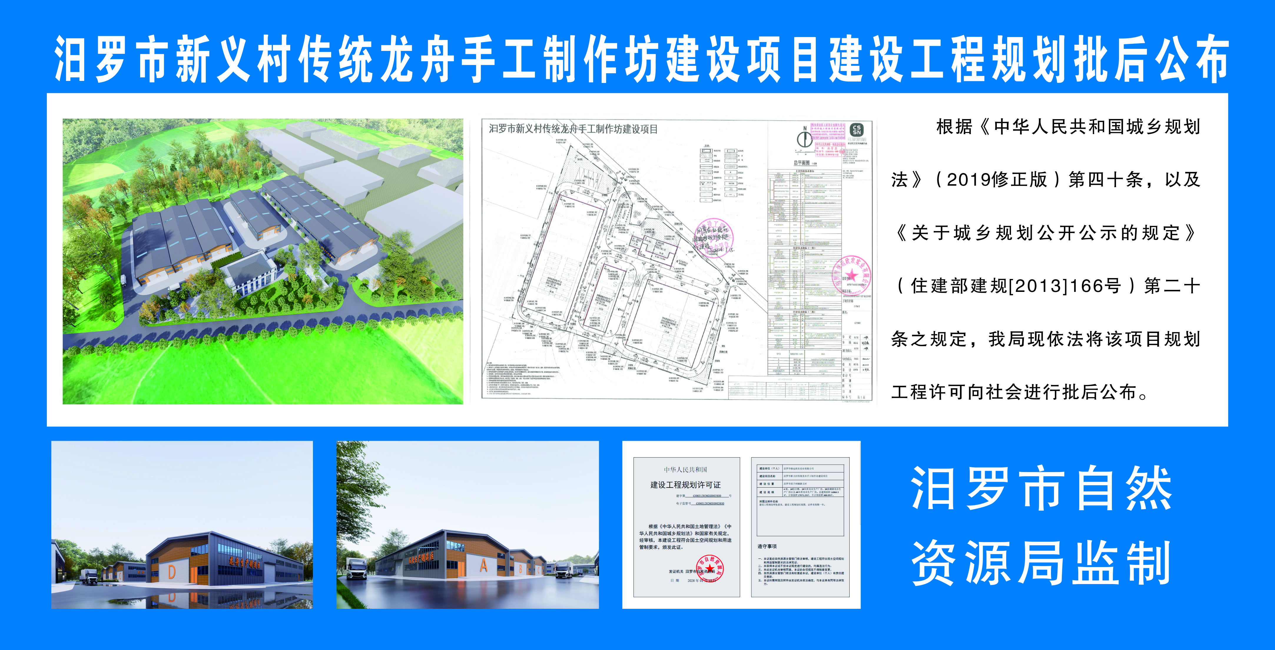 汨罗市新义村传统龙舟手工制作坊建设项目建设工程规划批后公布