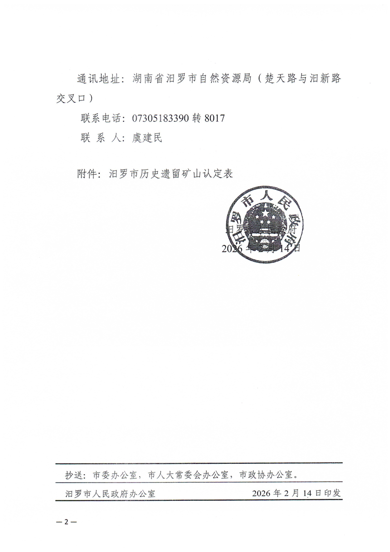 汨罗市人民政府关于汨罗市历史遗留矿山认定的公告