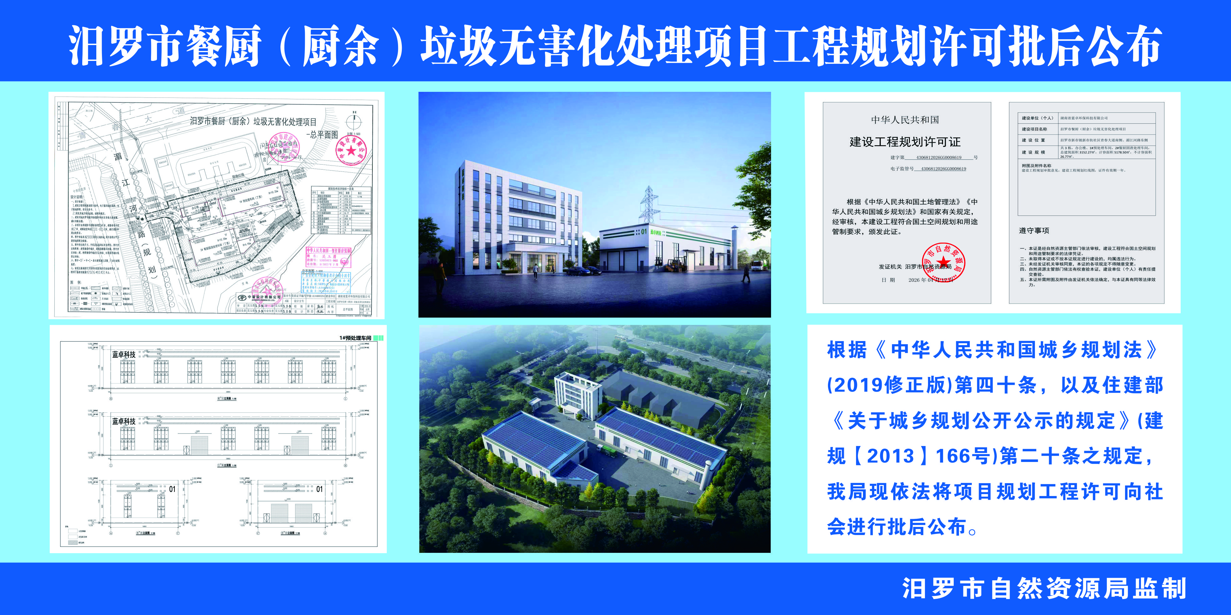 汨罗市餐厨(厨余)垃圾无害化处理项目工程规划许可批后公布