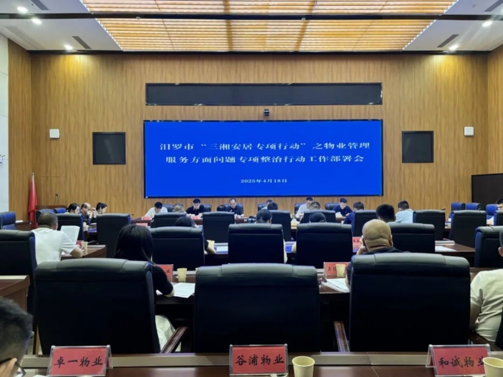 为贯彻落实2025年全省重点民生实事任务,聚焦群众关切的物业服务履约不力、公共收益侵占等问题,4月18日,汨罗市“三湘安居专项行动”之物业管理服务方面问题专项整治行动工作部署会在市住建局召开。市住建局、相关乡镇(街道)、物业行业协会、全市物业服务企业相关负责人参加。