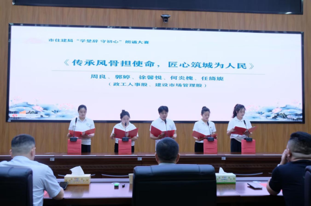 5月9日,市住建局组织开展“学楚辞 守初心”朗诵比赛,旨在筑牢干部职工廉洁自律思想防线,增强队伍凝聚力。局党组全体班子成员、局属各二级机构及机关各股室全体干部职工参加。