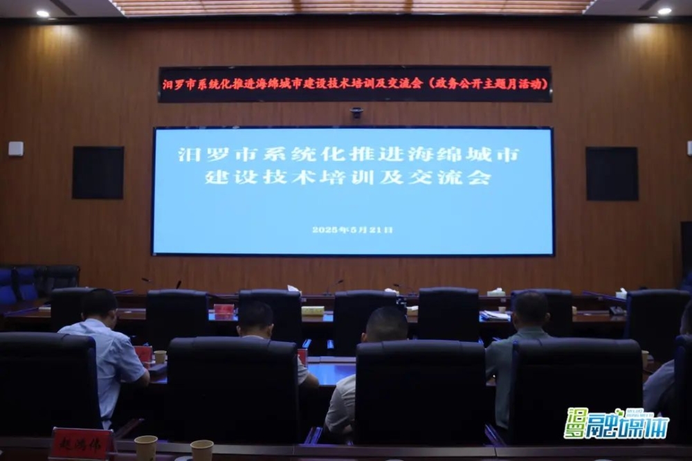 5月21日, 汨罗市系统化推进海绵城市建设技术培训及交流会在市住建局召开,总结阶段成效,加快推进海绵城市建设工作。相关单位负责人及企业代表参加。