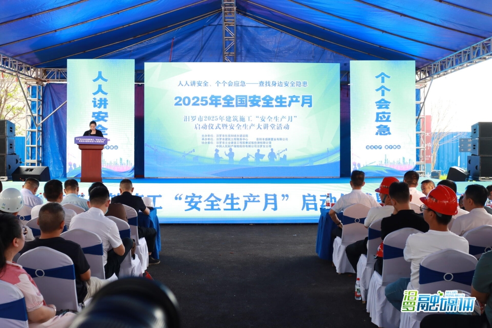 6月10日,汨罗市2025年建筑施工“安全生产月”活动正式启动。副市长曹陶出席启动仪式,全市建筑业、物业企业安全负责人及多部门代表参加活动。