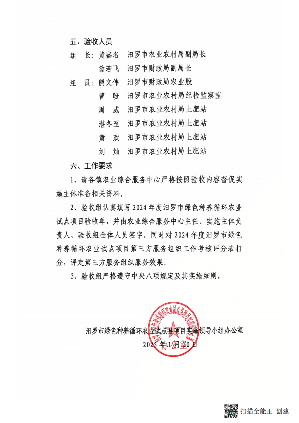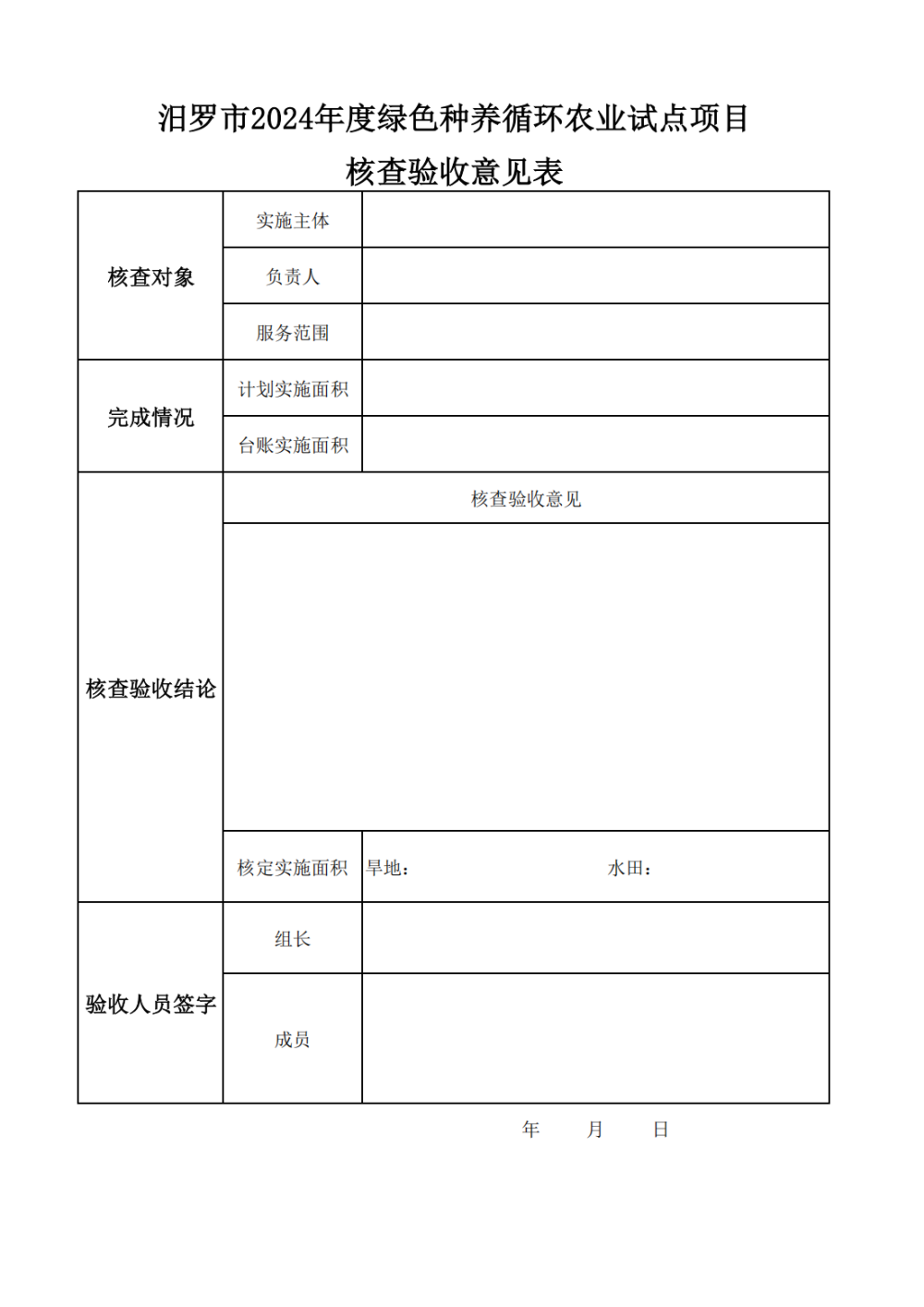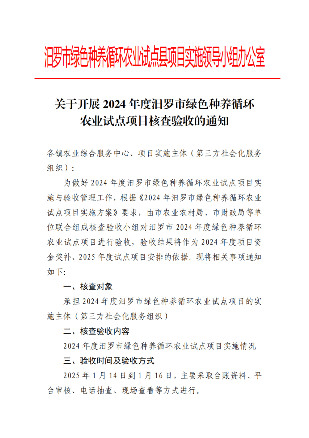 关于开展 2024 年度汨罗市绿色种养循环 农业试点项目核查验收的通知